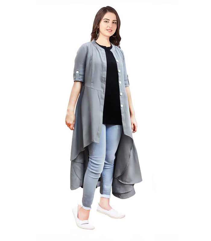 Gliter Fashion Women Solid Crepe Frontslit Kurta (Grey)