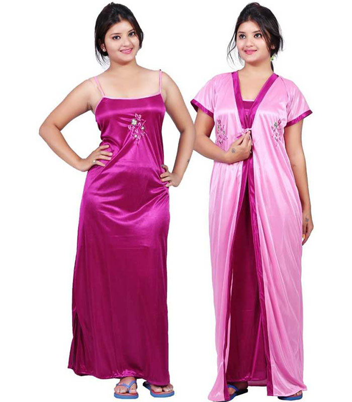 Shop Trund Women Nighty with Robe (Multicolor)